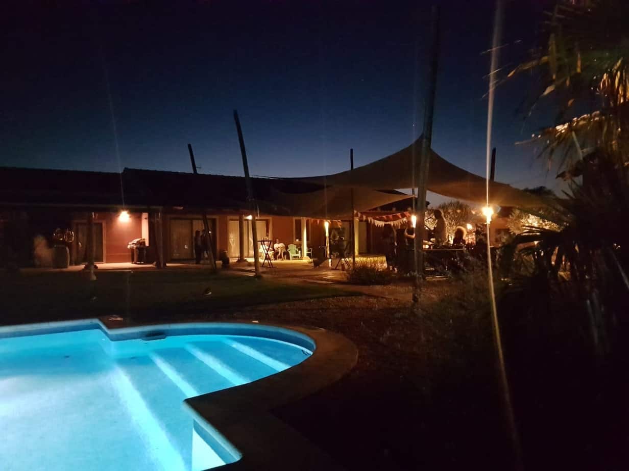 Tem vista para as oliveiras e para um velho sobreiro que ficam à noite maravilhosamente iluminados.