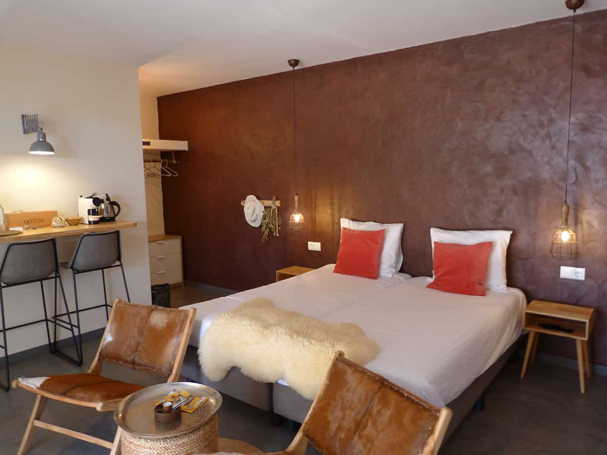 The luxurious and spacious Figo room is inspired by the warm tones of the fig tree and offers 28 m² of comfort. It features two very comfortable single beds placed together.